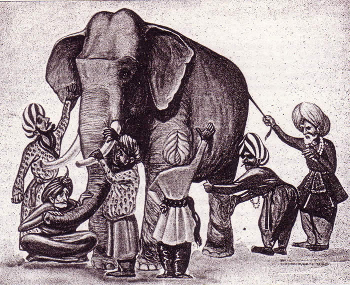 Това напомня старата притча за хората, които опипват слон със завързани очи — всеки усеща нещо различно, но никой не разбира какво стои пред него всъщност.